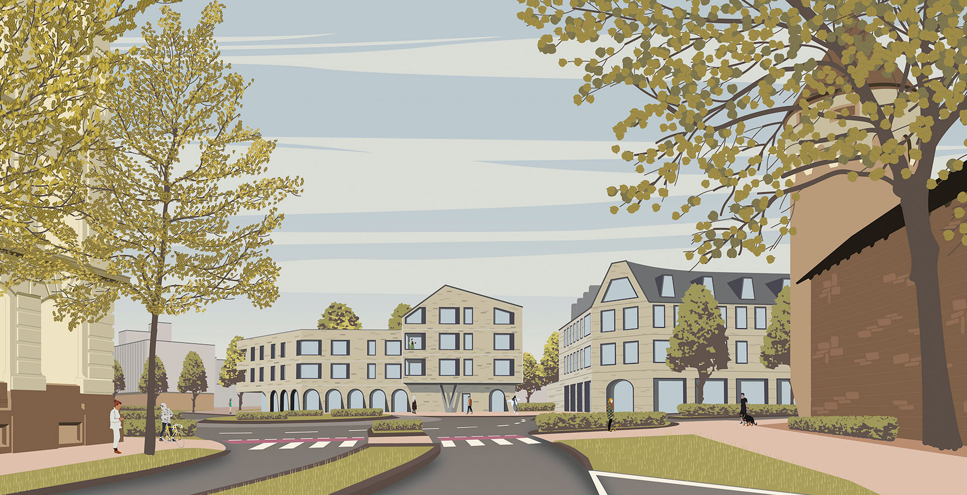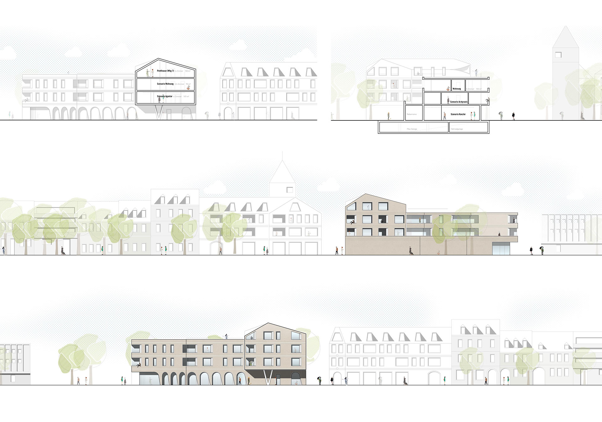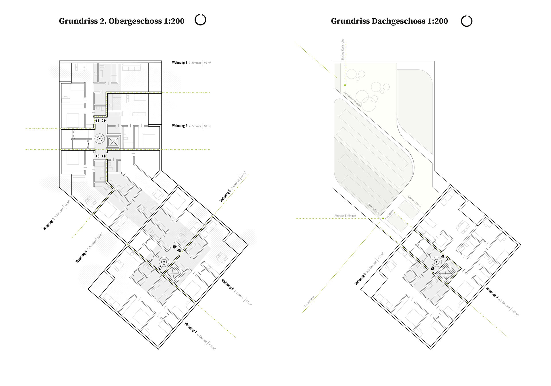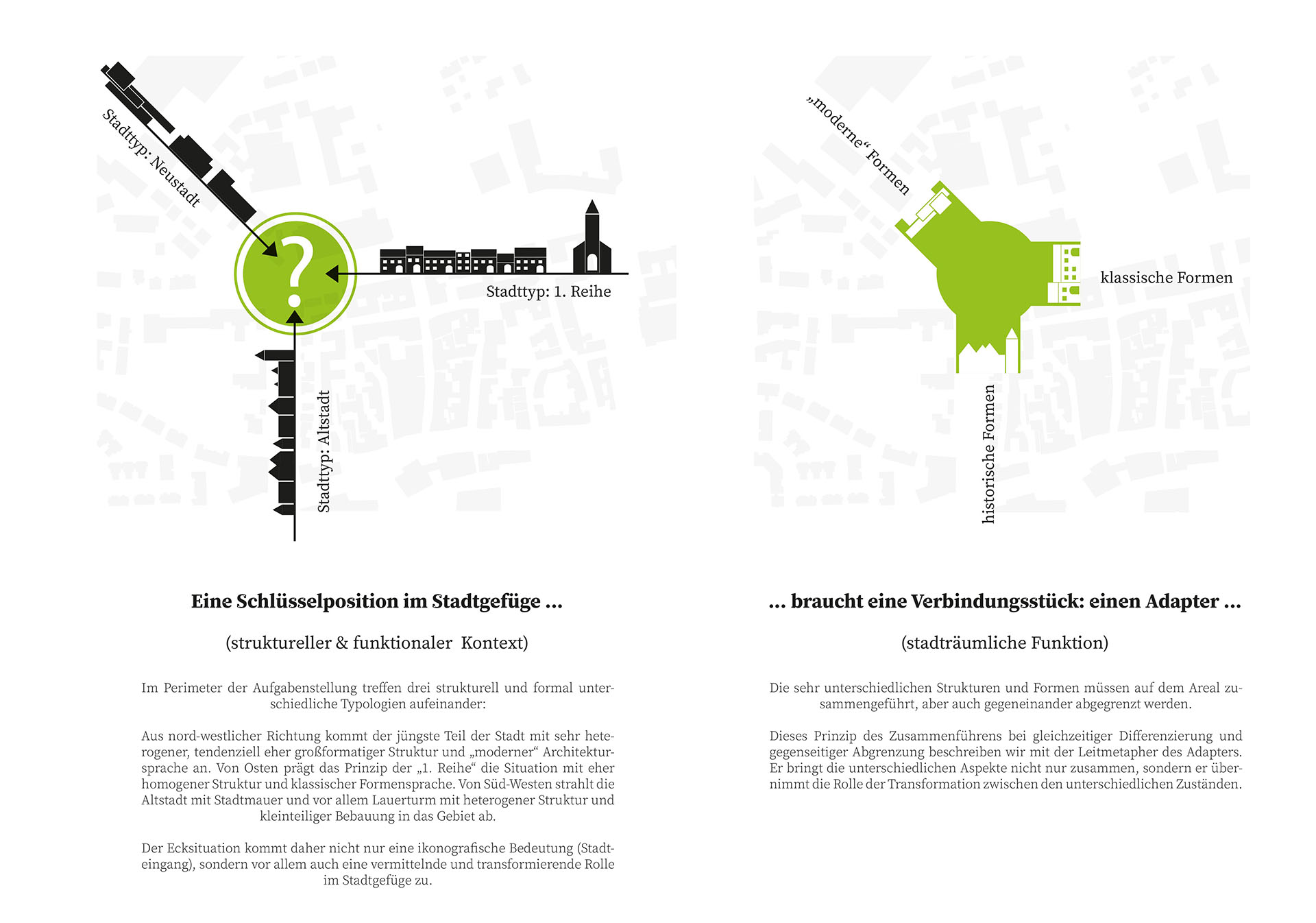 Ausgangspunkt unseres Entwurfs war die baukulturelle Identität Ettlingens. Aus den charakteristischen architektonischen Merkmalen der Stadt entwickelten wir eine eigenständige, zukunftsorientierte „Architektursprache“, die den gewachsenen Charakter Ettlingens aufgreift und zugleich neue Perspektiven eröffnet.